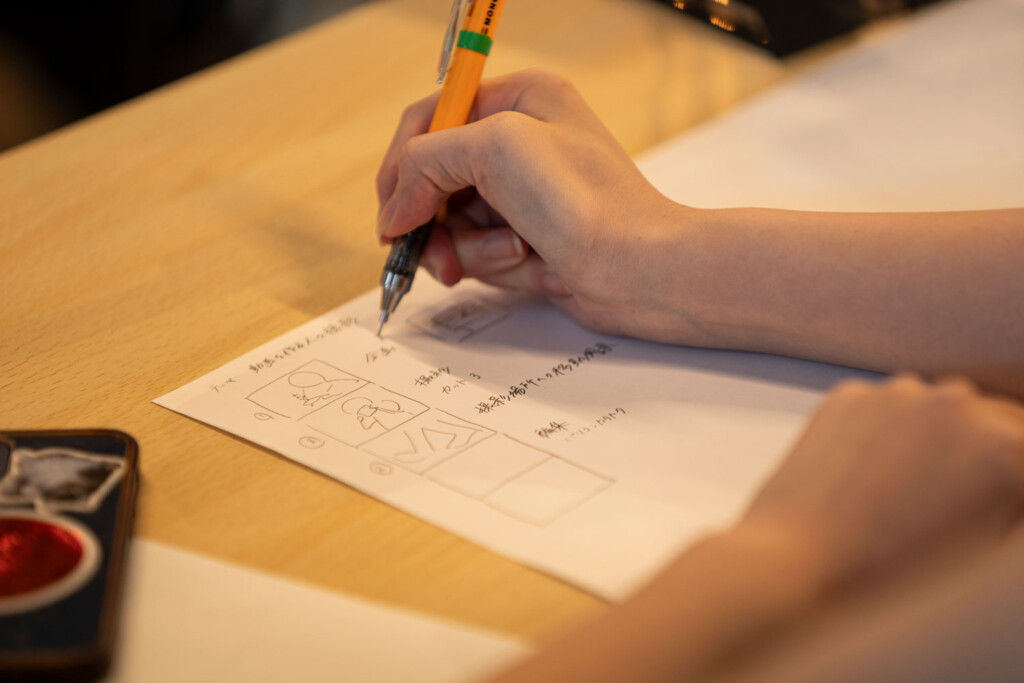 そうした座学を1時間ほどで終え、あとは各自、教室でイメージを膨らませたり、コンテを作ったり、教室を離れて実際に撮影へと繰り出したりしました。